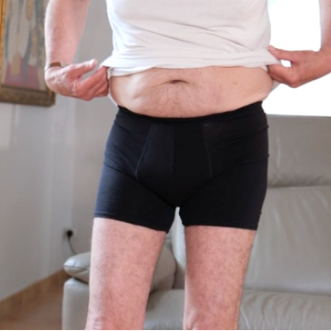 With Menvault your protection is placed exactly where men leak (front, back, side, secure leg openings). Finally made for men's bodies, whether standing, sitting, or lying in bed.